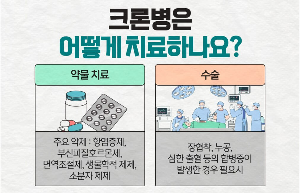 ☑️ 약물 치료: 항염증제, 면역 억제제, 항생제 등을 통해 염증을 조절합니다.
